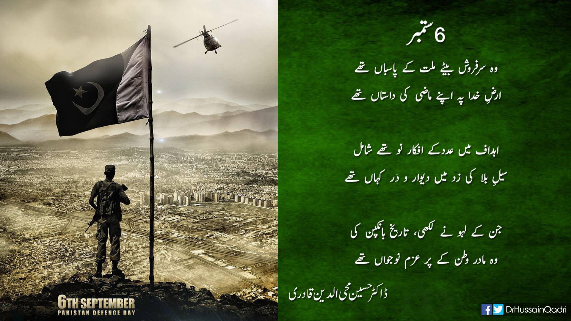 1. یوم دفاع 6 ستمبر ہمارے لیے وطن کے دفاع کا قومی دن مادر وطن کے دفاع کے لئے پاک فوج نے جو کارنامے انجام دے تھا پاک فوج شہدائے کو خراج عقیدت پیش کرنے کا دن ہے ہم اپنے وطن کے شہداء کی قربانیوں کو کبھی فراموش نہیں کریں ہمیشہ ہمارے دلوں شہدائے 6 ستمبر 1965 کے زندہ رہیں گے شہیدوں کی موت قوم کی حیات ہے