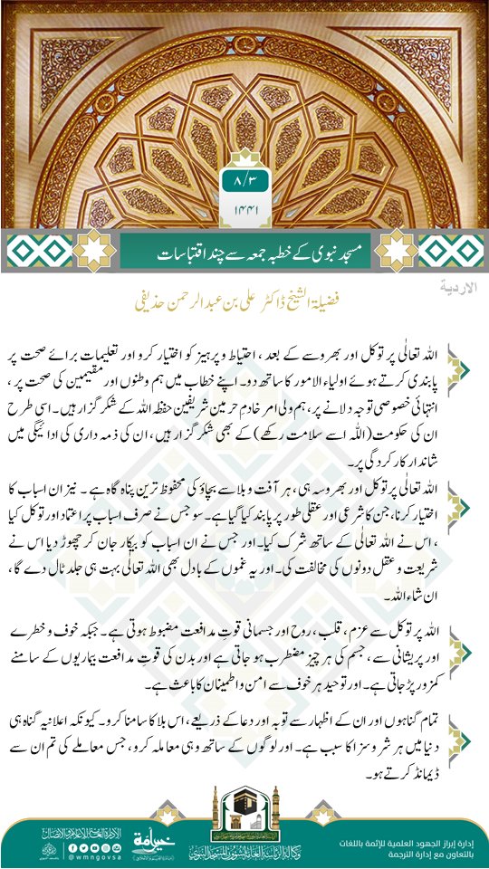 خطبہ جمعہ مسجد نبوی (اردو ترجمہ)
