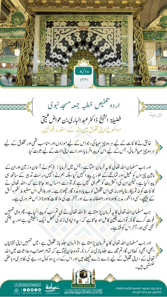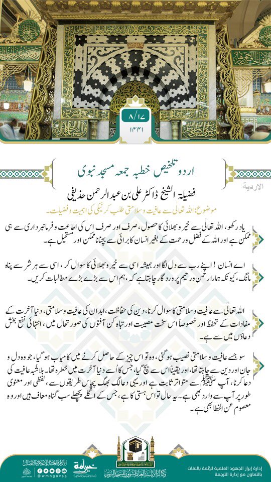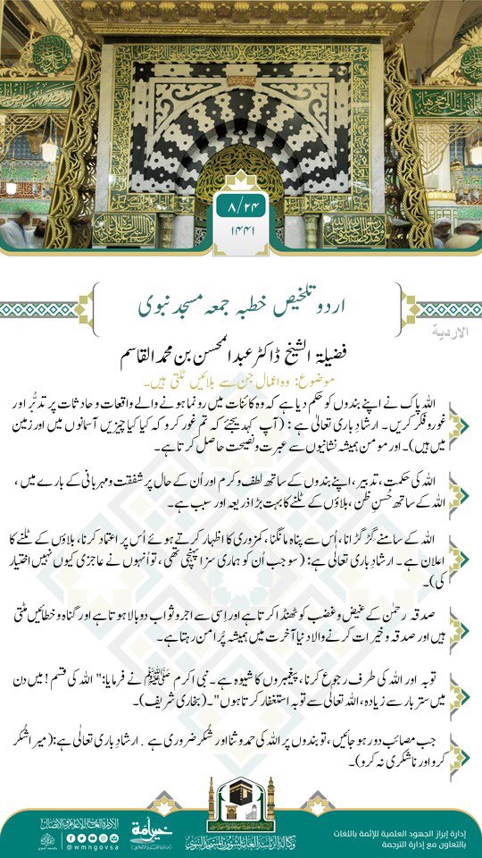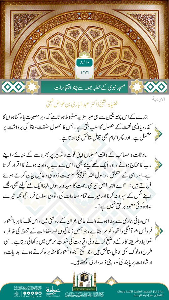 خطبہ جمعہ مسجد الحرام (اردو ترجمہ) امام و خطیب: فضلية الشيخ ماهر بن حمد المعيقلي موضوع: نیکی کے کام؛ بری آفتوں سے ب...